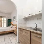 Rummen på lägenheten Studios & Apartments Vrettos har vattenkokare, kylskåp och glasföremål.